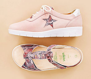 При плоскостопии — а также во время беременности и при наличии избыточного веса — требуется специальная ортопедическая обувь. Модели, которые выпускает фирма «Меди», кроме лечебных свойств обладают еще и стильным дизайном. Есть линейки моделей для женщин, мужчин и детей. Массажеры также выпускаются в виде удобных сланцев и тапочек.